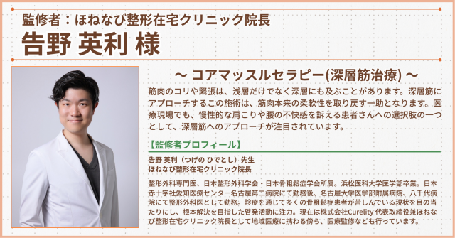 スタッフはすべて国家資格を持ち、コアマッスルセラピーの専門的トレーニングを受けた施術者が対応します